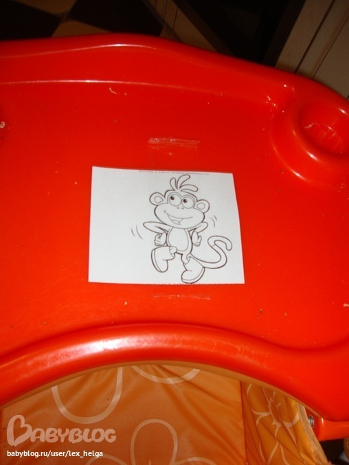 Перед завтраком в ожидании каши отрывали от стола липкие картинки - картинки обезьянок, приклеенные на скотч. Сыну идея понравилась, если чуть повзрослее, можно и раскрашивать заодно.
