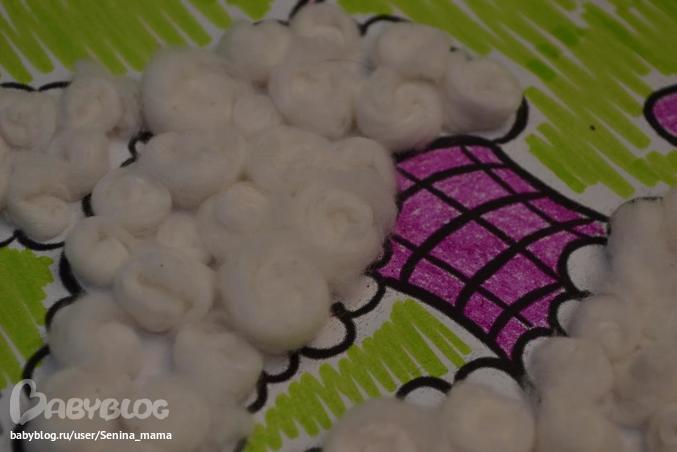 Впрочем и работа с ватой тут присутствует. Маленький шарик из ваты приклеила на хвостик:)))