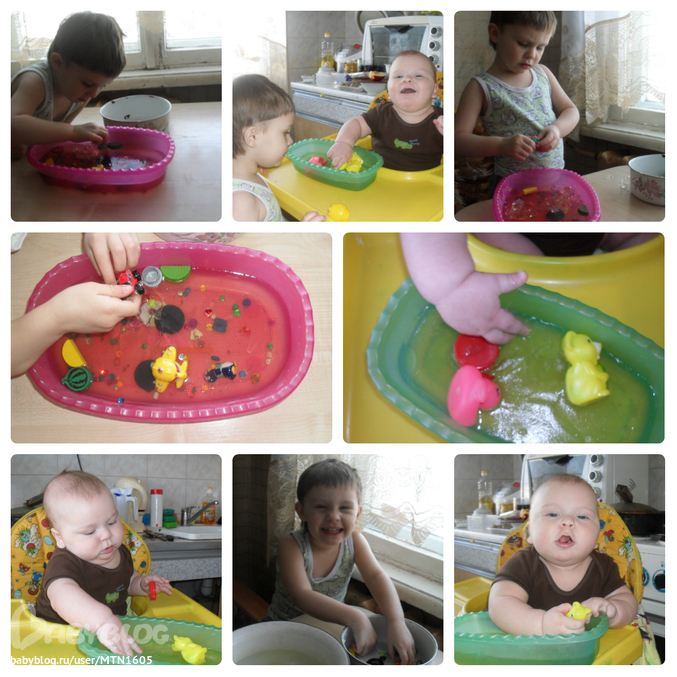 Желатин+вода. Желатину дать набухнуть, на плите прогреть, но не кипятить. На упаковку желатина 20 гр стакана 3 воды добавишь, когда прокипятишь. Этим желе заливаешь игрухи и в холодильник. Можно пищевой краситель добавить, у меня закончились ))