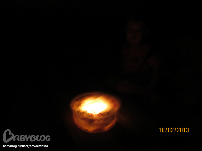 Спасибо, Ляночка!!!! Я еле его уговорила его убрать все назад в морозилку!!!!! Антошкин был в полном восторге от темноты, свечи, льда и облепихи)))))))