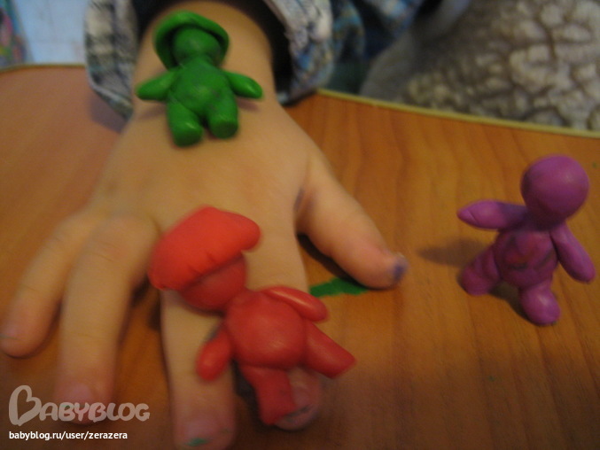 По дороге к медведю малыши разыгрались на руке Макара: прыгают, скатываются как с горки. А сиреневому грустно - солнце припекает голову, человечек поэтому вялый.
