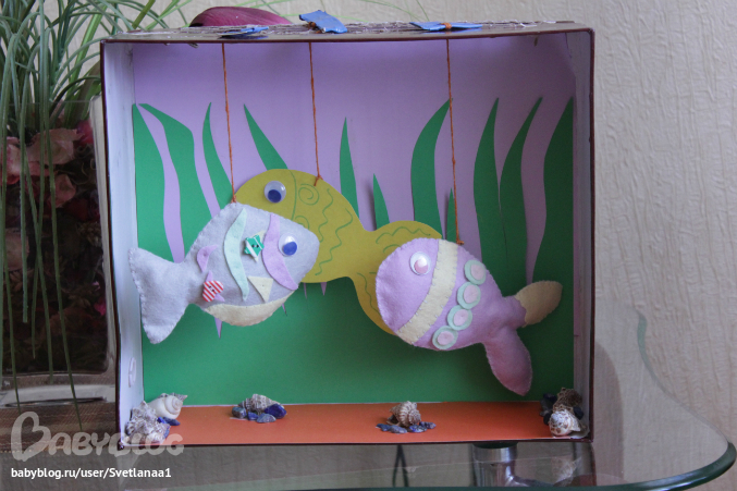 маленькие рыбки более гармонично вписались бы в такой аквариум, но я их сделала из фетра и такого размера, чтобы ребенок мог играть рыбками и без аквариума.