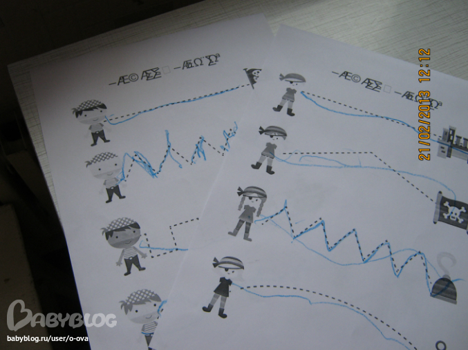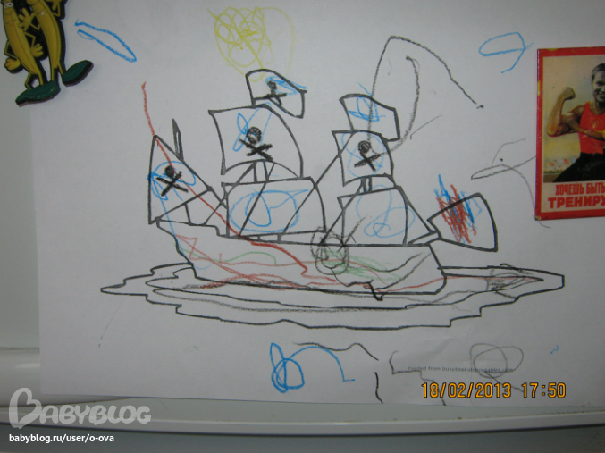 А здесь Кирюша раскрашивает флаг для коробля Джека.