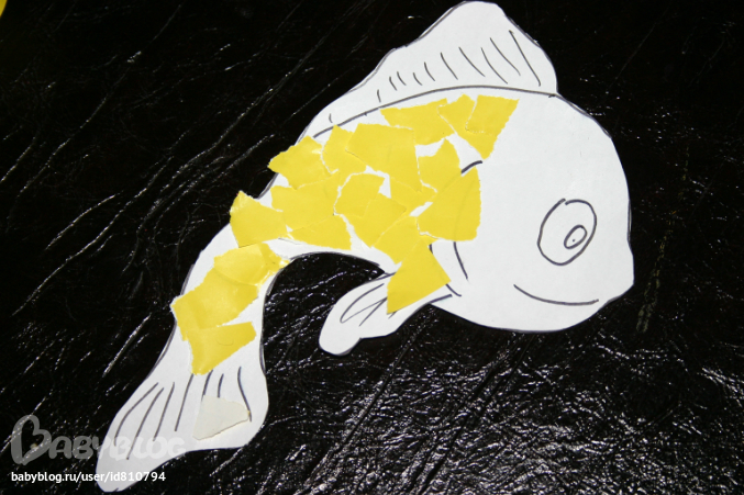 Золотая рыбка.Аппликация кусочками цветной бумаги.