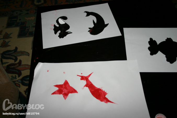 Из рыбок от трафаретов делали аппликацию и раскрашивали мелками