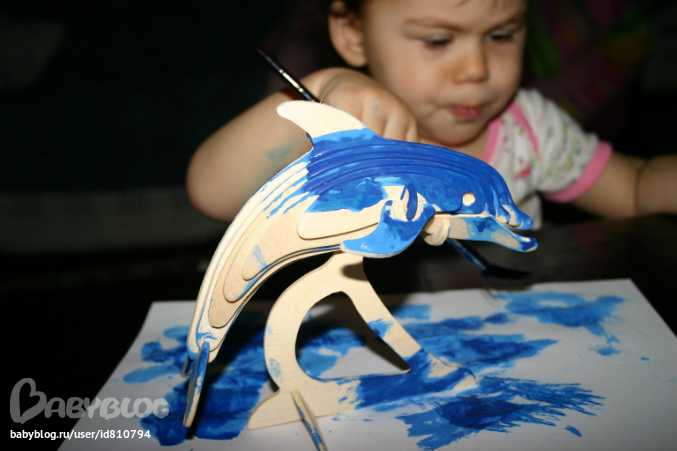 Вот такой дельфин.Я собрала,а дочь увлеченно его раскрашивала.