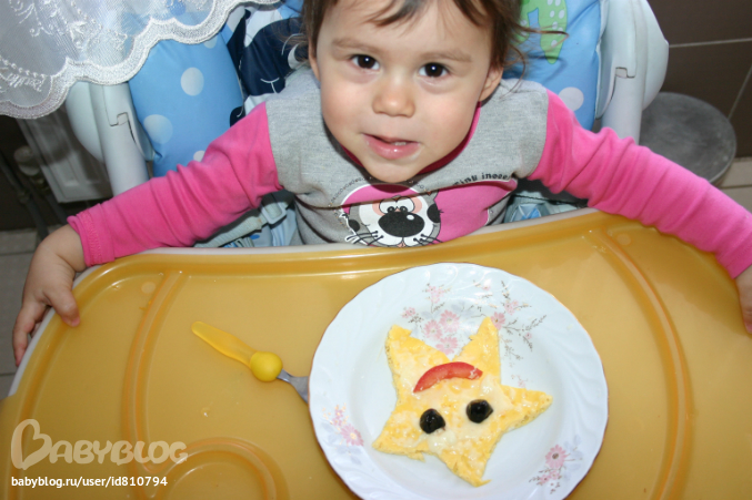 Кушали блюда из рыбы конечно же и вот такой омлет-морская звезда на завтрак.