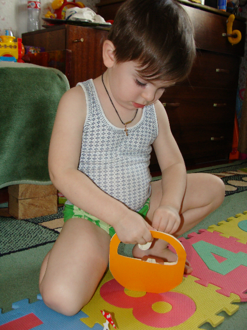 Только Саша не очень хочет делать открытки, и хочет их оставить себе....в итоге, сделали корзинку и для него, только не открыткой, а склеяли дно и бока. Собираем туда грибы)))), тоже самодельные.