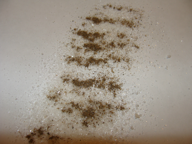 Это смесь соли и перца. Только соль лучше брать крупную, у нас в этот день была только "экстра"...но опыт всё таки получился.