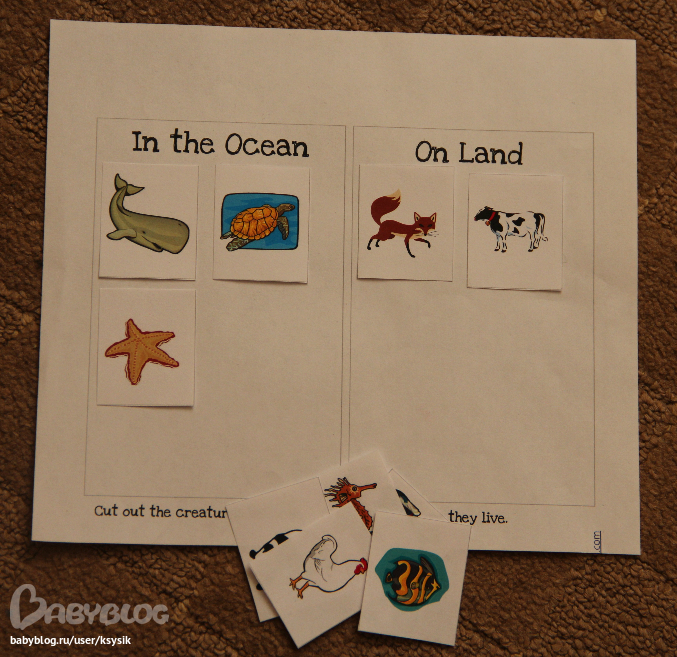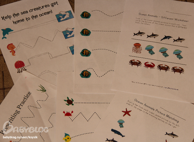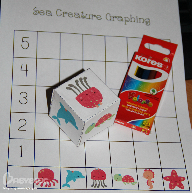 Еще вот такая у нас была игра. Суть не знаю точно какая, но мы играли так. Бросашь кубик, какой морской житель выпал, ту клеточку и зарисовываем. Сами понимаете Алешка только кидал кубик и следил чтоб мама отмечала)))