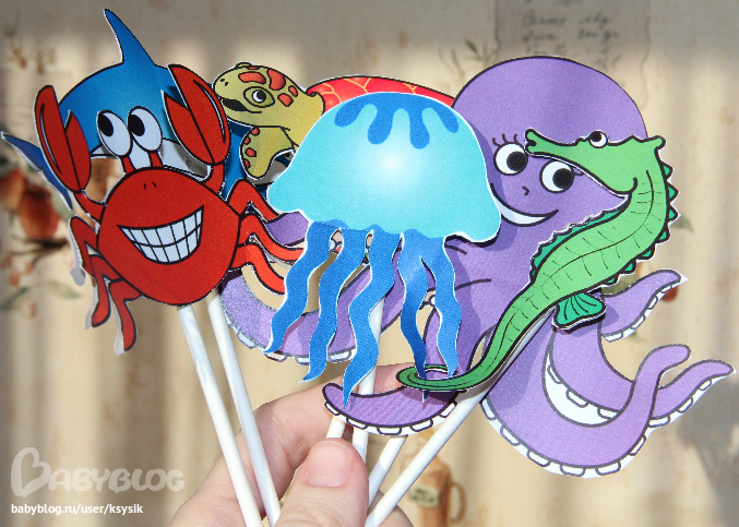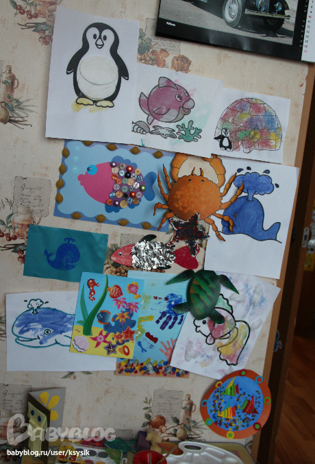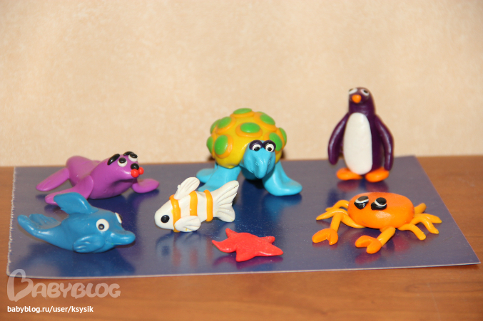 Если говорить о творчестве, то тут вся семья старалась. Вот таких морских обитателей мы с папой вечерами лепили. Алешка частенько с ними игрался, да и сейчас играется, не убираю.