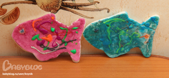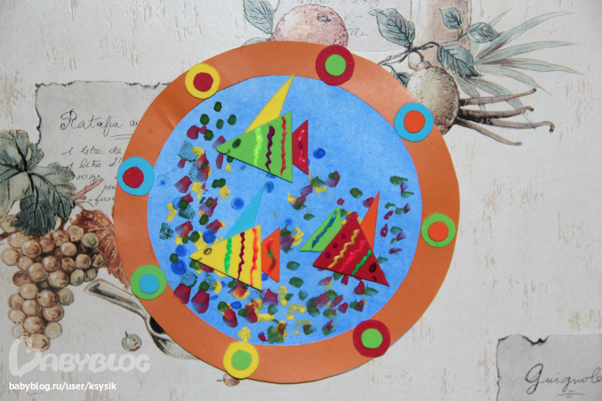 А это рыбки которе мы вместе лепили. Я их раскрасила полностью в один тон, выдала крски в тюбиках Алешке и дальше полный полет фантазий ребенка.