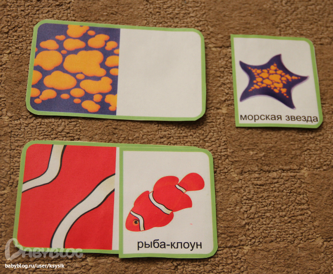 А это задание у нас вызывало бурю радости, потому что в нее мы не игрались а дурачились))) Сначала Алешка выставлял рыбок а мама выбирала карточку с подходящей цифрой, затем наоборот. Все это в через чур игровой форме у нас получилось)))