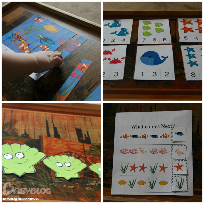 Обязательным пунктом у нас идут задания. Пазлы на счет, сам счет, сортировка, продолжи ряд, прописи и другие.