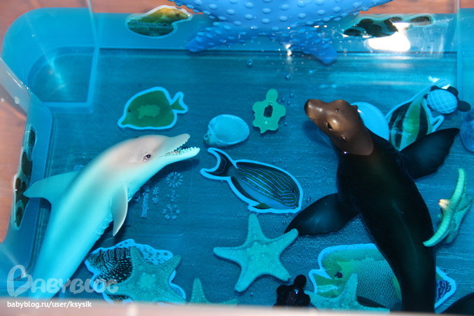 Еще и дельфинчиков разложили по росту. Только Алешка их называл папой, мамой и малышом))) так тоже пойдет.