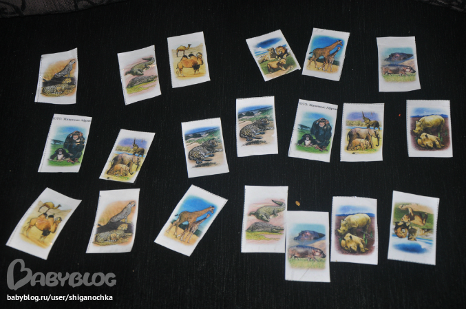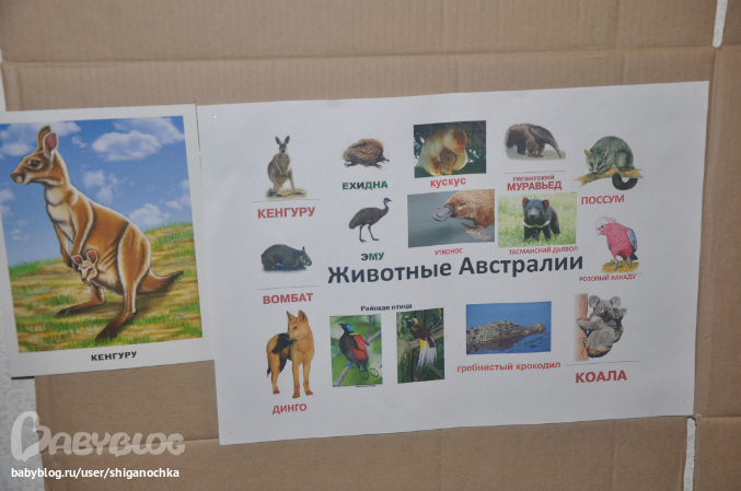 Аналогично - рисунки животных, а не фото, но качество на высоте. Хотя Мир на Ладошке мне нравится еще больше - поэтому из комплекта тоже выбрала Австралийских Животных и добавила к нашим карточкам.