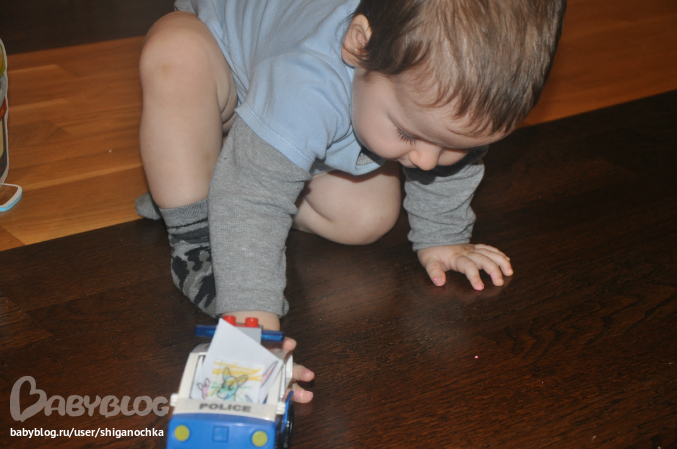 А это вовсе не игра - "Покатая кенгуру на машинке", а игра - "Кенгуренок потерялся". Создалась такая игра по мотивам книжки про Бамси (выше писала). Не успела сфотографировать, как все кенгурята и их мамы отправились кататься на машине! А смысл был по цвету найти кенгуренку маму. Костя нашел, при чем очень легко, но быстро всех в кучу и катать. Цвета выбирала не основные - взяла розовый, фиолетовый и коричневый.