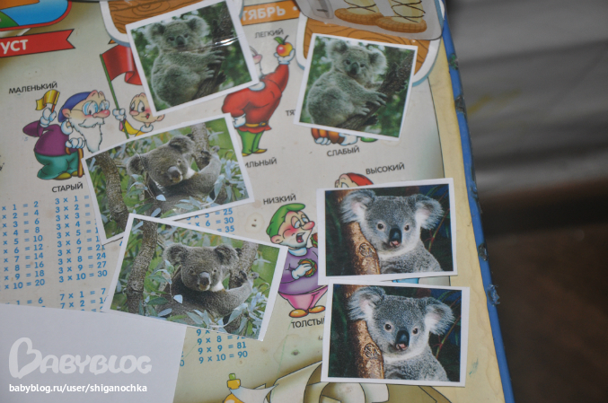 Здесь только одни коалы. Но три пары разных. Мы взяли Деда и Бабу из и раскалывали бабе и деду одинаковые картинки. Только так смогла заинтересовать в этой игре.