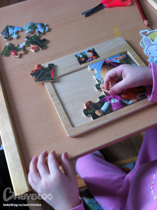 Напоследок собрали пазл с Машкой, очень ловко получилось.