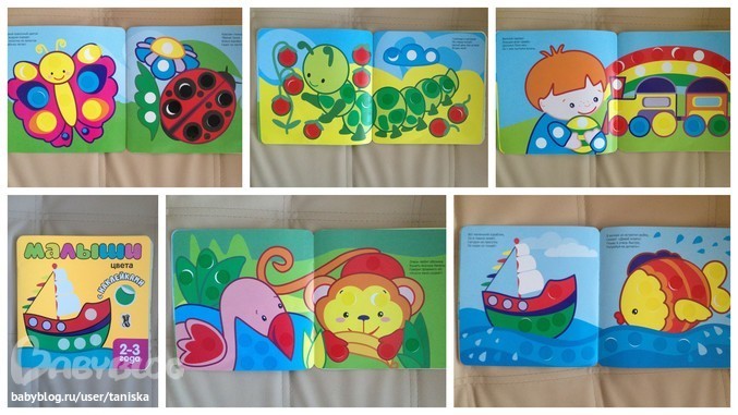 А вот это пособие () не так популярно (или я не видела на ББ) - мне оно очень нравится - и цвета повторить, и мелкую моторику потренировать (нужно попасть кружочком в кружочек). Оцень хорошая серия: