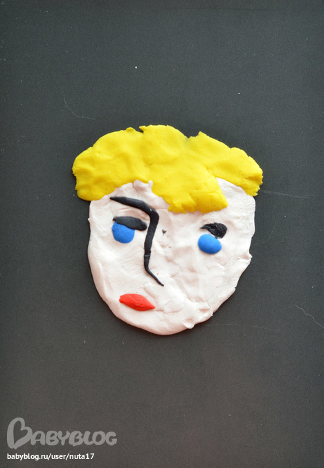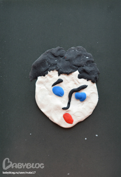 У детёныша дикий восторг от процесса. Я помогала с овалом лица и носом.