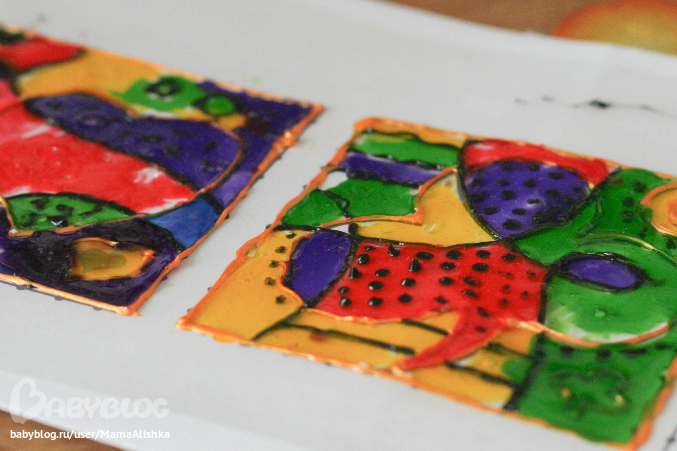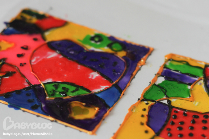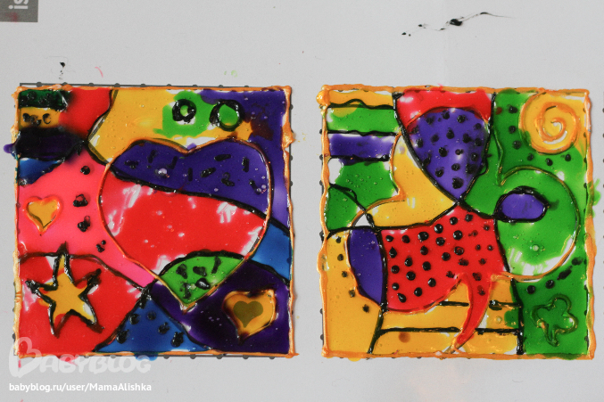 Мистер Умелец или Очумелые ручки (поделки, аппликации, интересные находки, идеи и задумки)Подарила бабуля на 23е много разных интересных поделочных наборов. Один из них - витражи, которые красками нежидкими рисуются. С жидкими красками мы делали с двух с половиной лет - вот здесь есть. А нежидкими активно стали где-то с 3,5 и возоновили в 4,5.