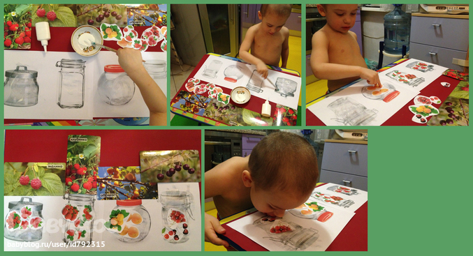 Когда я говорила: "Ммм! Какая вкуснятина получается - ням-ням!", Ваня облизывал ягоды (по-моему и клея малость нализался)))