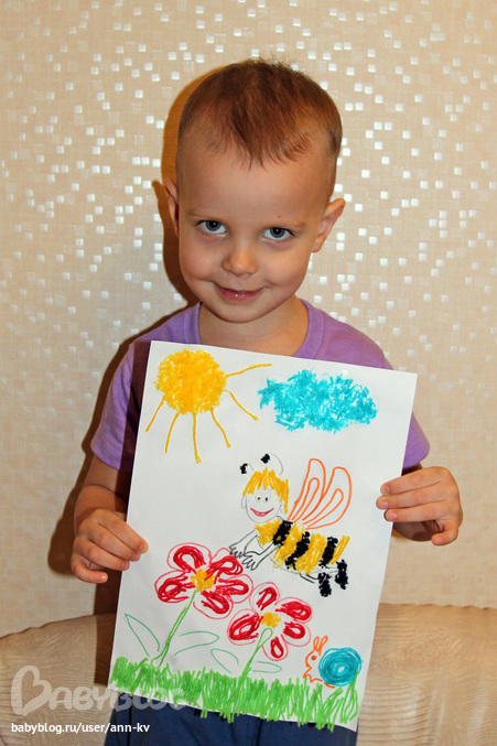 Мистер Умелец или Очумелые ручки (поделки, аппликации, интересные находки, идеи и задумки)Началось всё еще пару дней назад, когда мы делали помпоны, а из них игрушки. У меня осталось много обрезаных ниток, которые я решила приспособить к делу. Обычные раскраски нам уже порядком надоели, поэтому я предложила сыну апликацию из ниток. Сюжет картинки не пришлось долго выдумывать, Артём сейчас любит мультик про пчелку Майю.
