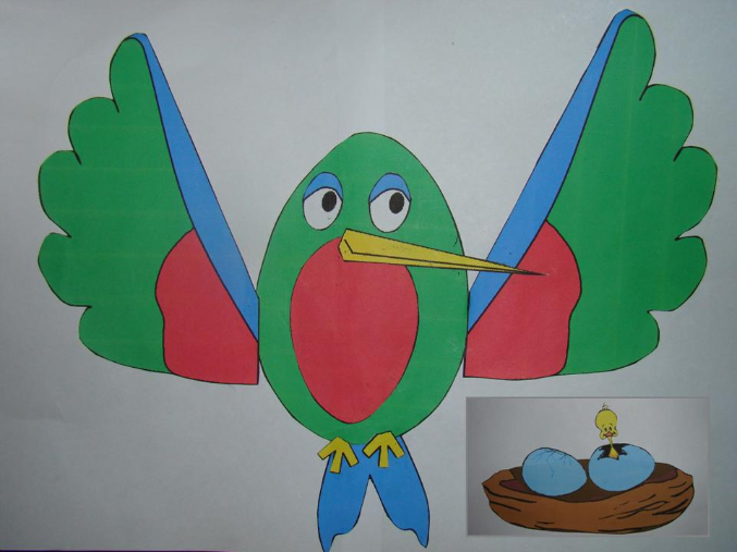7) Калибри – аппликации птички и ее гнезда:
