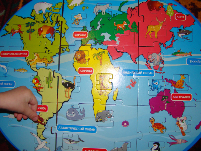 1) карта из пазлов с животными;