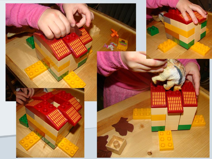 А чтобы показать образ жизни ленивца - Даша укладывала ленивца спать – пыталась ложить на кроватку, но ему не понравилось, потому что самым любимым и привычным местом обитания для него было дерево! И на этой почве мы сделали дерево из конструктора: