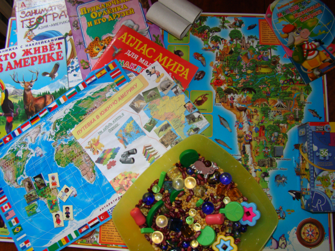 Мы все внимательно рассмотрели и поняли, куда нам предстоит отправиться (рассматривали Южную Америку на карте Атласа для самых маленьких). Но прежде Даше нужно было найти и собрать все те базовые вещи, к которым мы будем постоянно обращаться в течение ТН. А это: