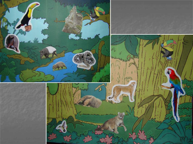 9) Картинки с изображением тропического леса – заселяли животными: