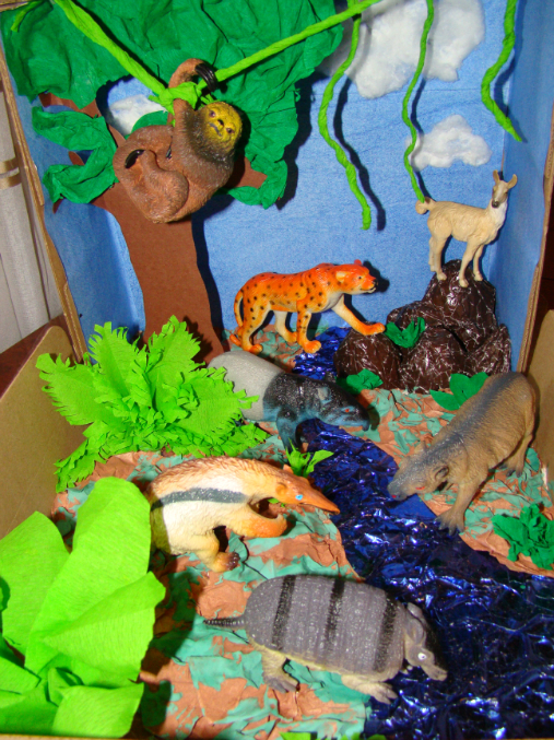 Поскольку объять необъятное невозможно для изучения я выделила только тех животных, которые, являются, на мой взгляд, наиболее интересными и обитающими только в Америки. А именно: ягуар, пума, муравьед, броненосец, тапир, капибара, ленивец, лама. И птицы: тукан, колибри, просто попугаи (так как их очень много в тропиках), еще была анаконда, кайман и рыбы пираньи.