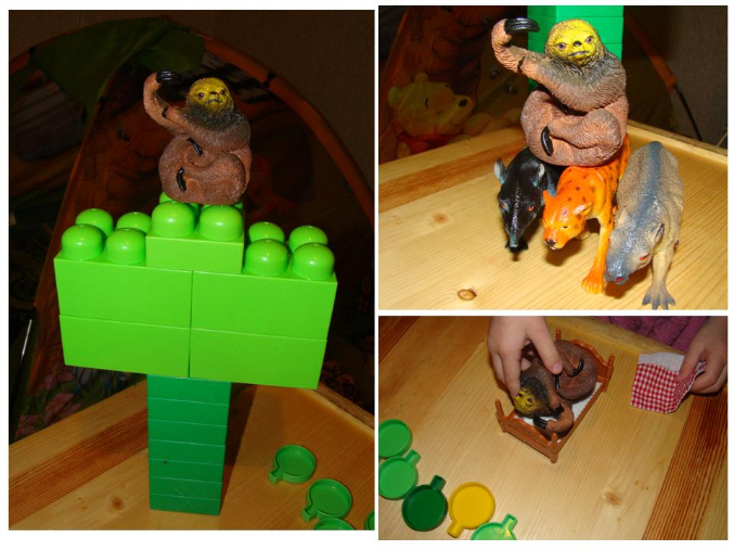 1. Ленивец: для того, чтобы Даша запомнила, что ленивец является самым медленным животным, мы устраивали соревнования – бега. Самым первым у нас прибегал ягуар, а самым последним ленивец. Потом Даше стала жалко бедного ленивца, ведь он совсем не умеет бегать, и его друзья ему помогли – возили его верхом на себе.
