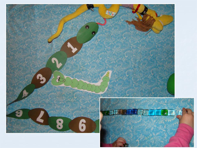 4. Змея Анаконда – рулон с бумагой растянула на 11 метров (длина анаконды), а затем мы ее измеряли Дашиными шагами, а еще прыжками и разными игрушками (прям как в том мультике про 38 попугаев). А потом Даша очень долго бегала по этому маршруту – так сильно ей понравилась эта игра. Вобщем то, что анаконда длинная – Даша четко усвоила!