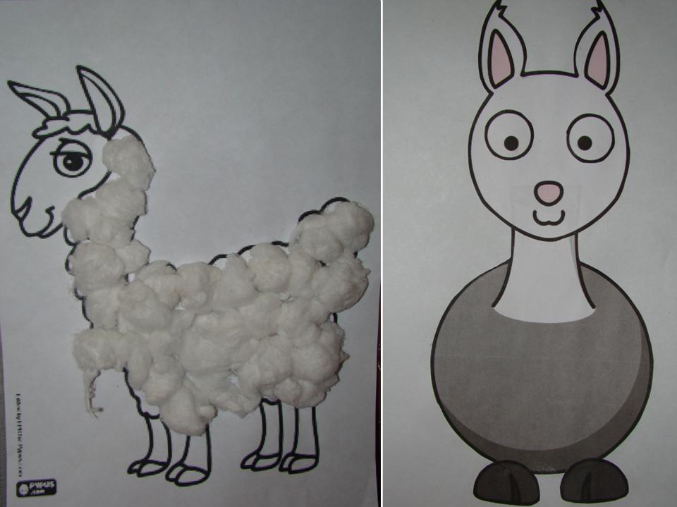 4) Лама ( обычная аппликация и из ваты):