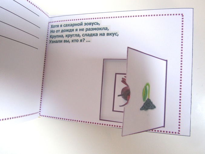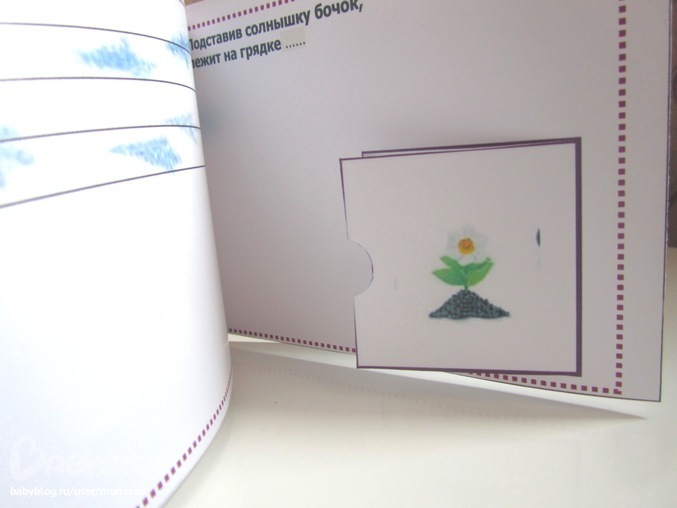 Книга уникальна тем, что на каждом окошечке нарисован этап развития растения от семечка до цветка. По этому мы не только учимся разгадывать и понимать загадки, но и изучаем Ботанику. По мимо этого на противоположной стороне, где черточки- можно писать те варианты ответов на загадку, которые предлагает ребенок, по мере его роста и развития