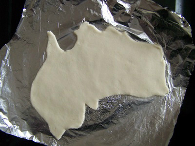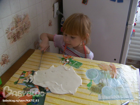 После рисованного материка мы решили его вылепить из теста! Опять же шаблоном послужила обратная сторона той же папки, очень оказалась удобно по ней вырезать тесто, главное хорошо вдавить в пласт теста)))