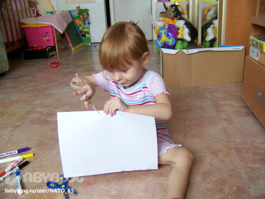 Стала уверенно работать ножницами и делает все с большим энтузиазмом, только бумагу успевай подавать)))
