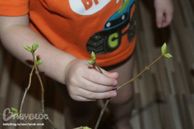 С улицы принесли ветки сирени. Наблюдаем за тем как появляются листочки.