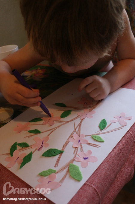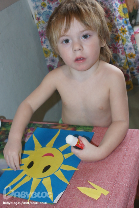 Еще я сдела Матвею вот такой цветок из плотного гофрированного картона. Просто собираем его и учим части цветка.