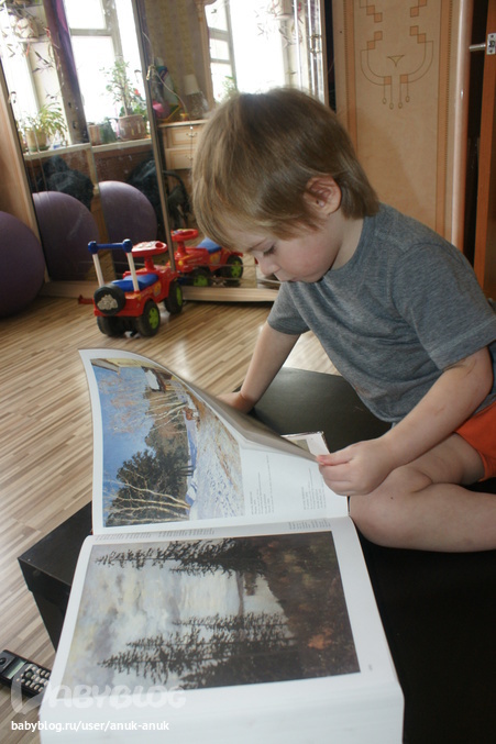 На книжных полках нашла книгу с иллюстрациями русских художников. Рассматриваем с Матвеем картины. Я обращаю внимания на картины с изображением весны.