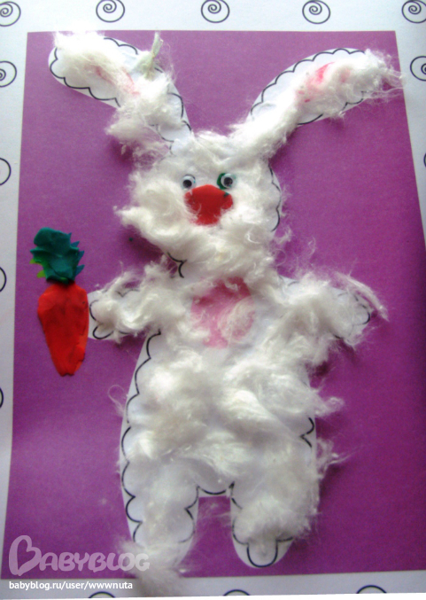 КонкурсыПредставляем наше творение! Белого кролика Пушистика. Как и полагается, с морковкой и красным носом))