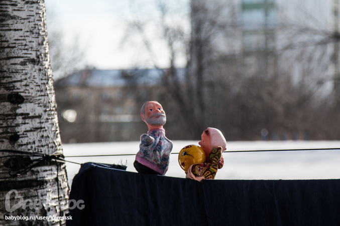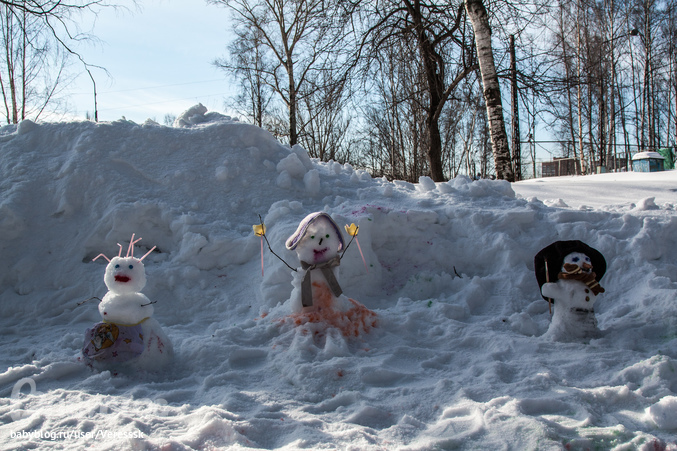 Вместе с группой единомышлеников мы подготовили праздник для семей с детьми и провели его под открытым небом, в Городском парке культуры и отдыха. Погодка в этот день стояла чудесная: весеннее солнце прогрело морозный воздух до -5, а синем небе не было ни облачка! Жаль, конечно, что снег был совершенно не липкий, но даже это не остановило самоотверженых "скульпторов", которые при помощи воды и подручных материалов все-таки порадовали нас веселой "Аллеей снеговиков"