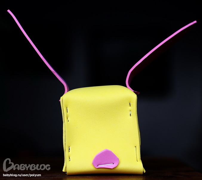 2. из декоративной пенки. Цвет выбрала дочь. Его еще можно кормить (под зубами есть отверстие - "рот":) )