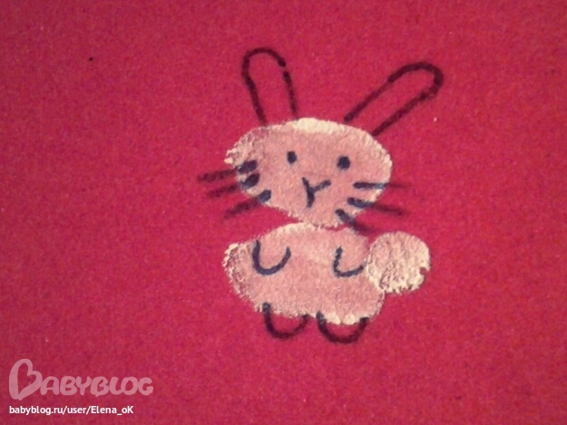 Начали мы с нашего "фирменного" КроликаИзЛадошки (какое-то время назад рисовали таким образом комикс на конкурс). Правда, он там был Зайцем. Солнечным. :)