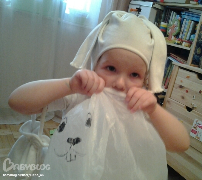 Желтопузый Белый Кролик впечатлил дочу больше всего! Сама добавила пуговицы и перчатки зверю, потребовала шапку, водрузила на нее помпон.