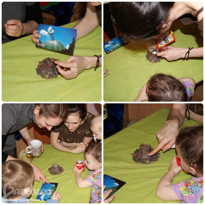 7. И под конец сделали наш любимый с Верулей вулкан. Другим деткам он тоже понравился... Это уже из Мира на ладошке. Загадки природы.