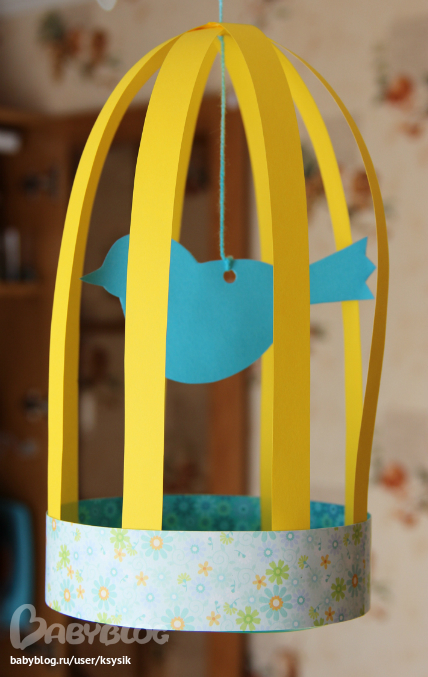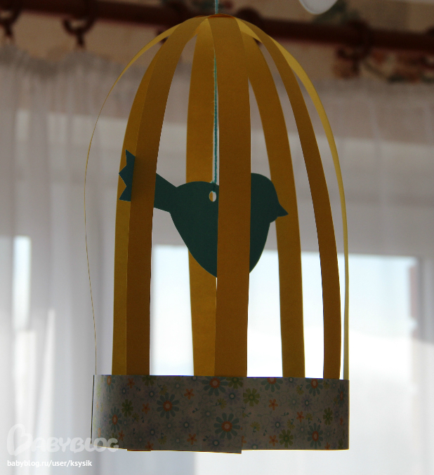 Помимо творчества на птичью тему (покажу уже все весеннее творчество вместе потом), решила сделать еще птичку в клетке. Алешка безумно любит попугайчиков, думала и это его порадует.